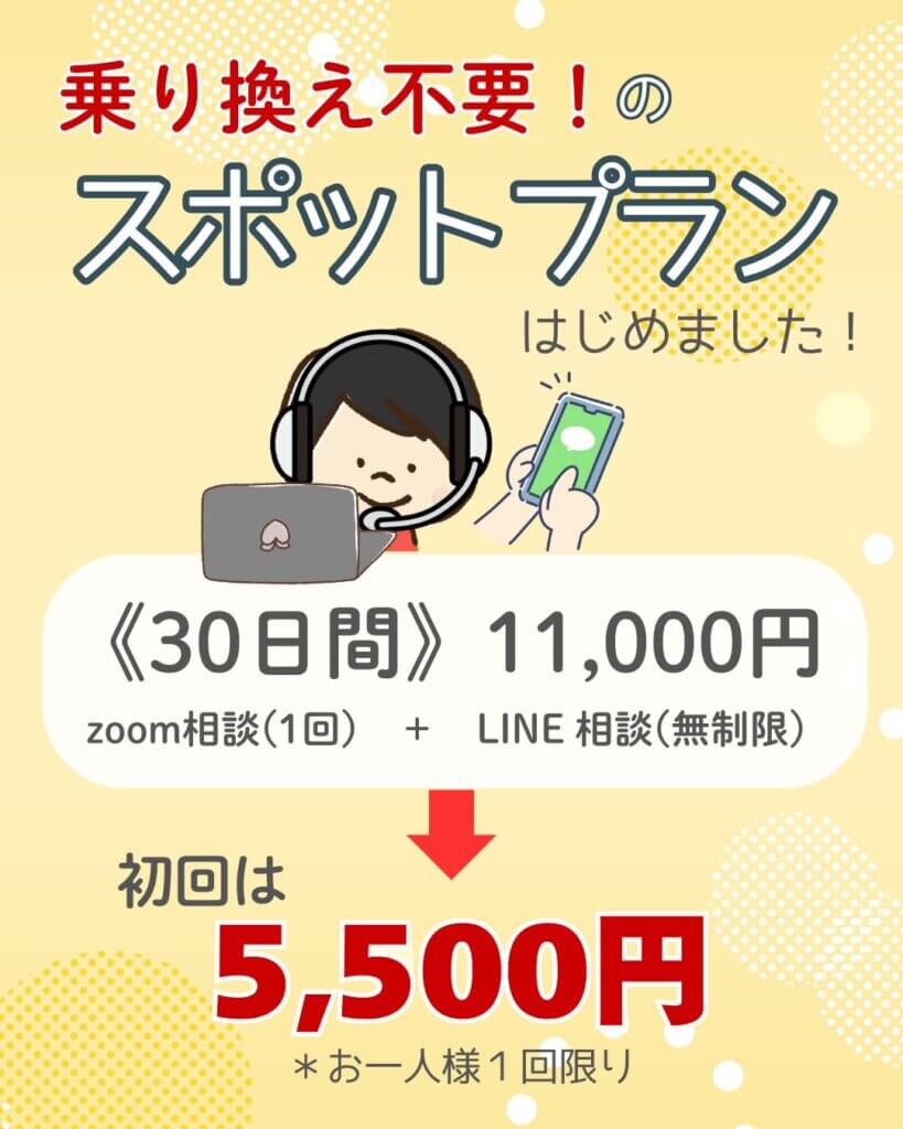 30日間、zoom相談(1回) + LINE相談(無制限)が受けられるプランで、